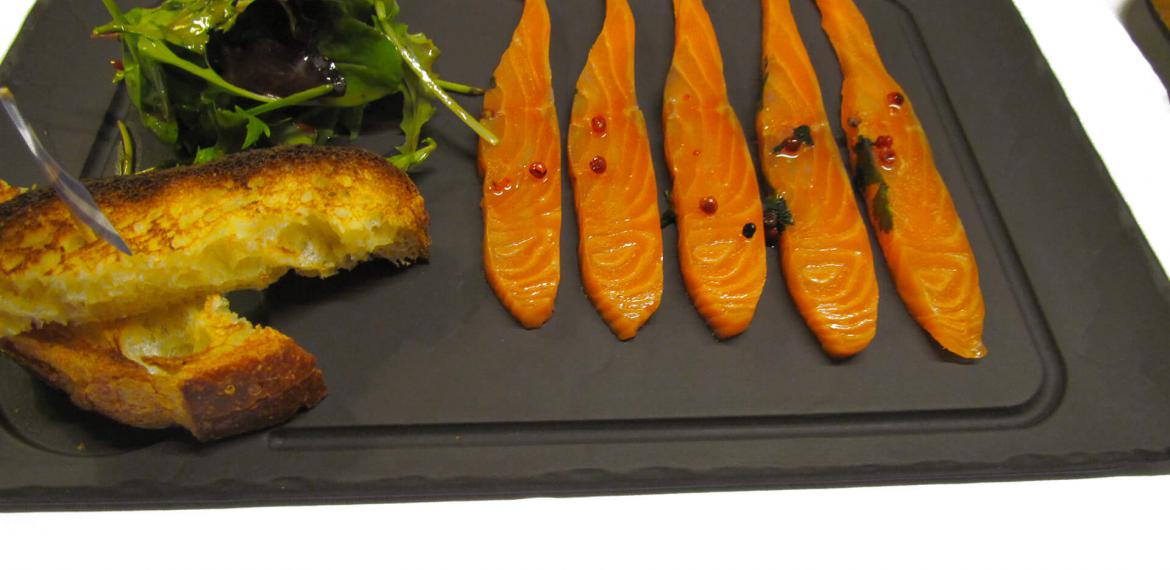 Noix de Saint-jacques et grosses palourdes, espouma de Campari-agrumes