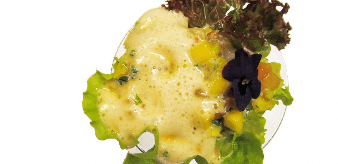 Huile vierge de camomille, espouma de maïs aux agrumes, fleur de sel de Guérande