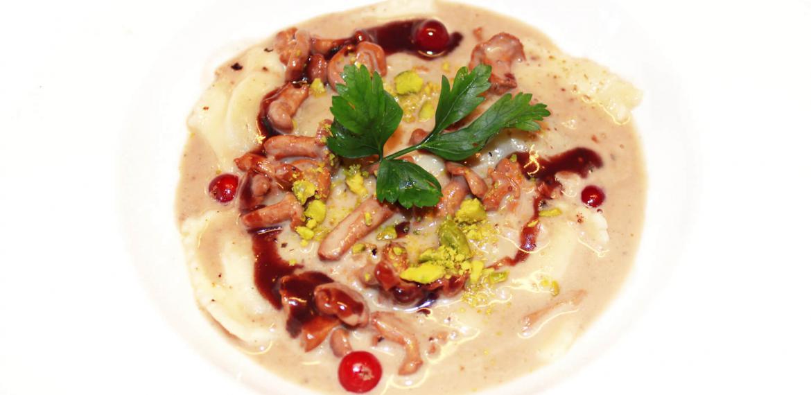 Vichyssoise tiède au topinambour, toast de pain grillé au jambon de cerf