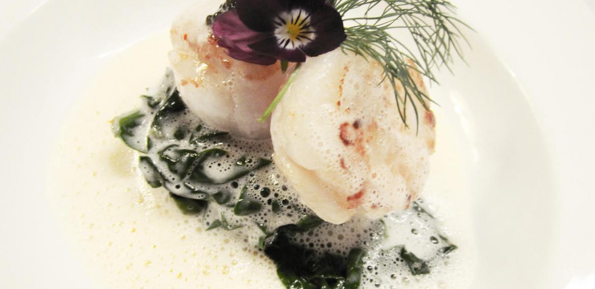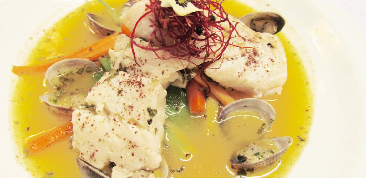Noix de Saint-jacques et grosses palourdes, espouma de Campari-agrumes